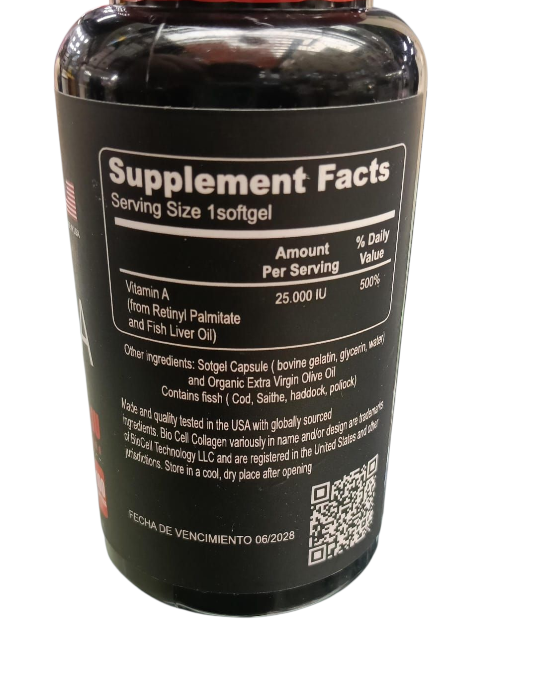 LA VITAMINA A: EL PILAR DE TU SALUD VISUAL E INMUNOLÓGICA: Presentamos la Vitamina A Workout, un suplemento esencial diseñado para apoyar el rendimiento físico y mental. Esta vitamina es crucial para la producción de rodopsina (esencial para la visión nocturna) y juega un papel clave en la defensa contra patógenos, el mantenimiento de la piel y la salud reproductiva.